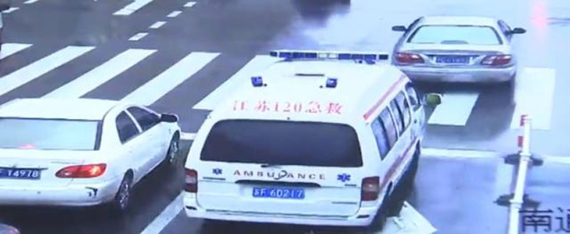 電影情節在道路上出現了,一路綠燈讓救護車通行